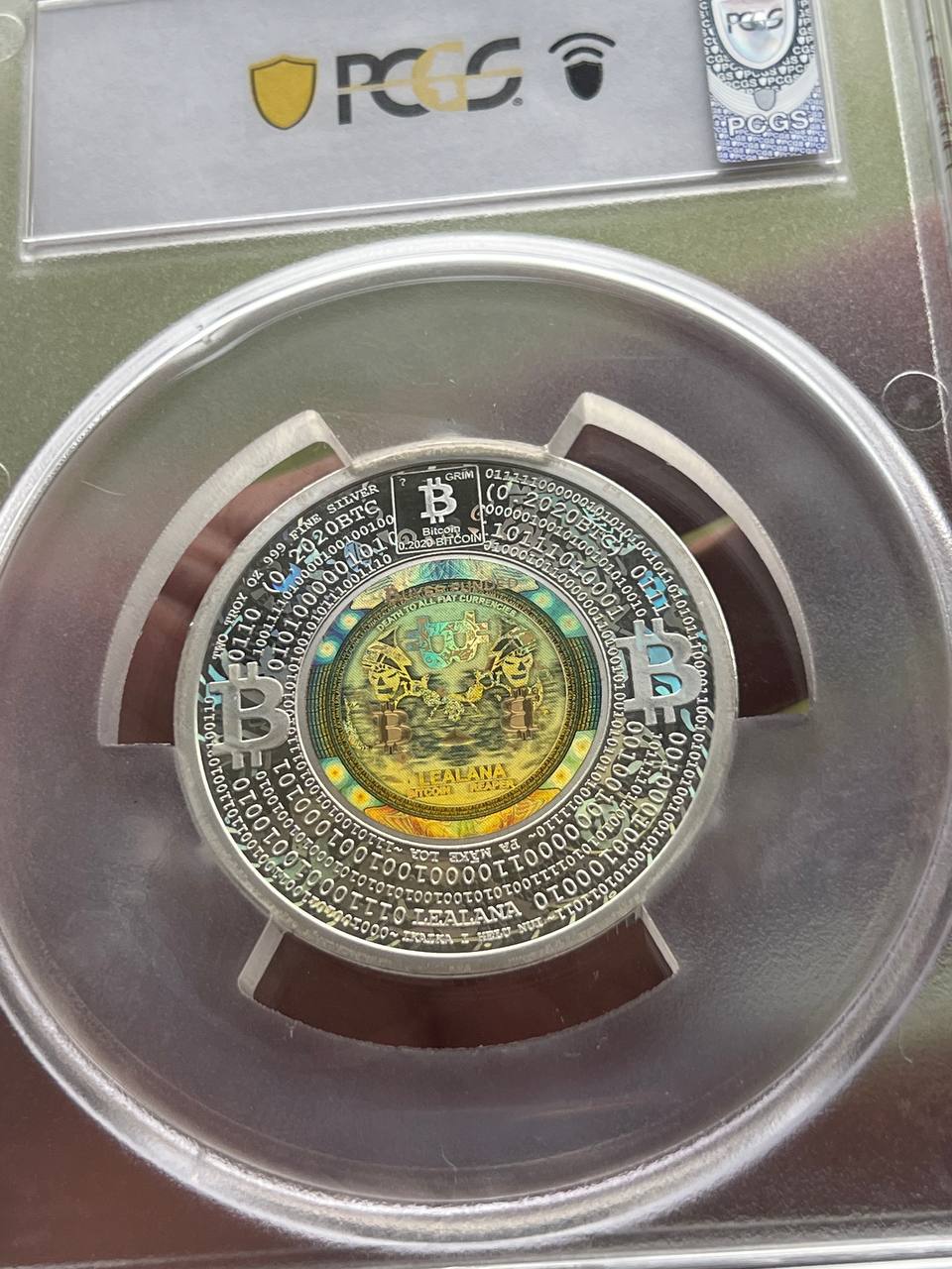 Unfunded 2023 0.2020 Bitcoin. Error Variety. Rainbow Finish. 2oz 999 Fine Silver. Proof-69 Deep Cameo (PCGS).