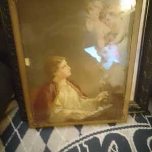 Very Old Antique Angel Picture - As Is