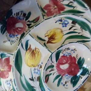 Large Antique Italian Floral Platter / Divided Plate